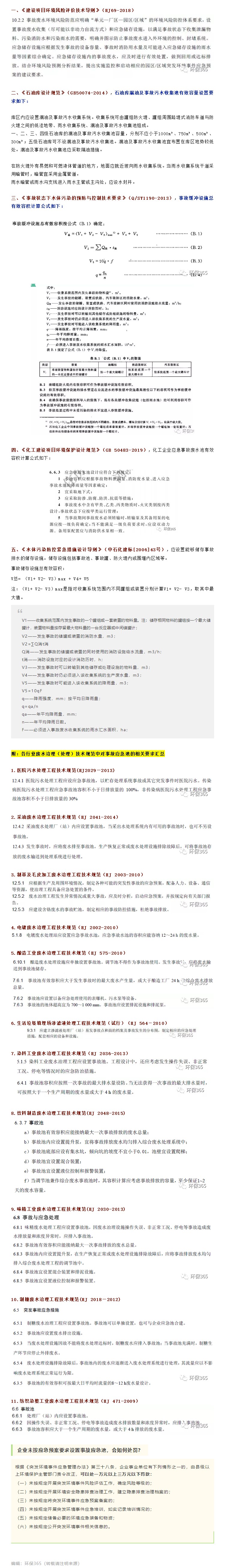 3、應急池容積核算可(ke)以參考《水體污染防控緊急措(cuo)施設(she)計導則》([2016]43號)、《化工建(jian)設(she)項目環境(jing)保護設(she)計規(gui)范》(GB50483-2019)、《事(shi)故(gu)狀(zhuang)態下水體污染的預防與控制(zhi)技術要求(qiu)》(Q/SY1190-2013)、《石(shi)油化工企業(ye)設(she)計防火(huo)規(gui)范》(GB50160-2008)等規(gui)范文件。
